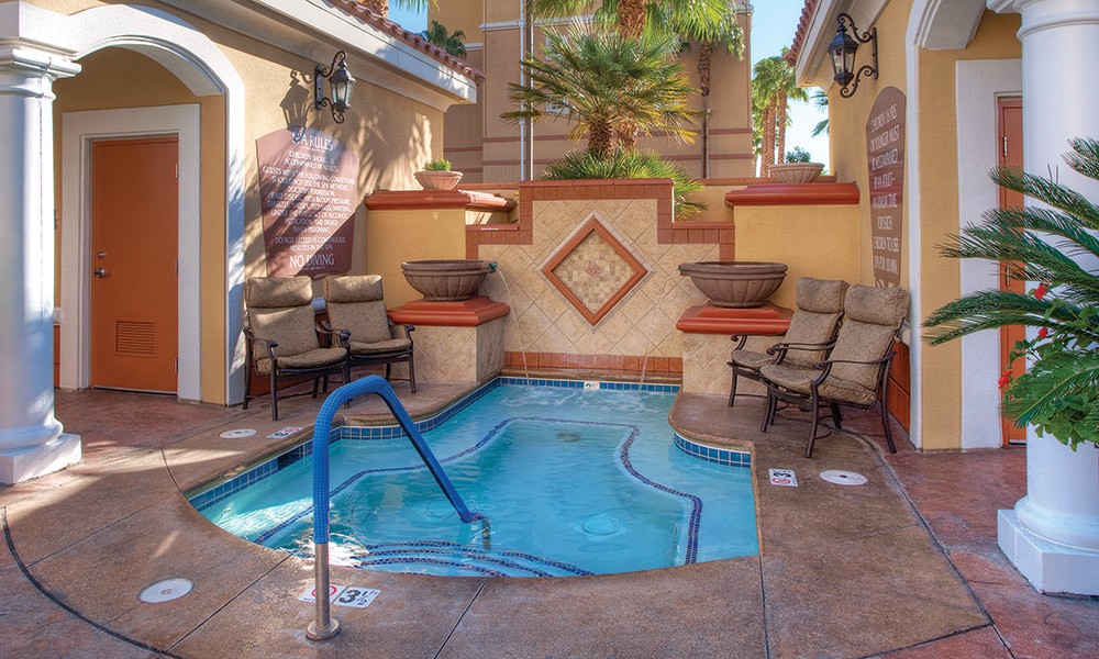 Make Wyndham Grand Desert Resort your Mediterranean-style vacation retreat and gain access to the most exceptional amenities in Las Vegas. Spend your afternoons at the outdoor swimming courtyard, designed to mimic a lush desert oasis that makes you feel like a world away. When not sunbathing, hit up the tanning beds or the soothing massage services for a little extra pampering. High speed wireless Internet connectivity makes updating your Facebook photo album with all your favorite vacation photos a breeze. In the mood for a little leisure recreation? The activities center is packed with great activities like dancing, billiards and karaoke. No matter what your style or your taste, Club Wyndham Grand Desert Resort offers everything you need for a dazzling Vegas getaway.