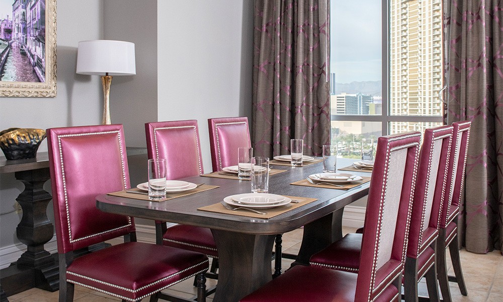 At Wyndham Grand Desert, these spacious one- and two-bedroom resort suites comfortably sleep four to eight guests and range from 612 to 1,325 square feet. You will appreciate the privacy of separate bedrooms, the economy of a mini or fully equipped kitchen, and the convenience of a washer/dryer in each suite. Plus, a whirlpool tub (in some suites), dining area, and TVs throughout are added comforts designed to make your stay more enjoyable.