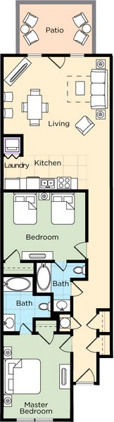 The resort offers spacious studio, one-, and two- bedroom resort suites that sleep four to twelve guests. One-bedroom resort suites include a king bed in the master bedroom and a sleeper sofa in the living area. Two-bedroom suites include a king bed in the master bedroom, two double beds in the guest room and a sleeper sofa in the living area. All suites offer a washer/dryer for your convenience. One and two bedroom suites are equipped with a full kitchen and dining area and a balcony/patio for your enjoyment. Two- bedroom resort suites are also available in loft style.
