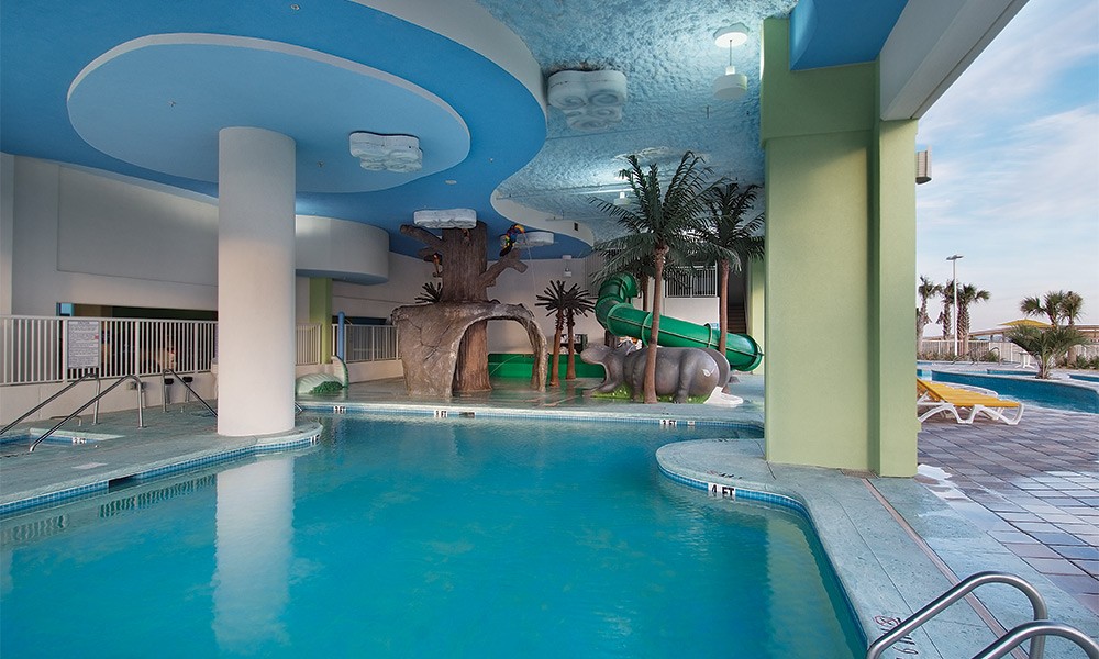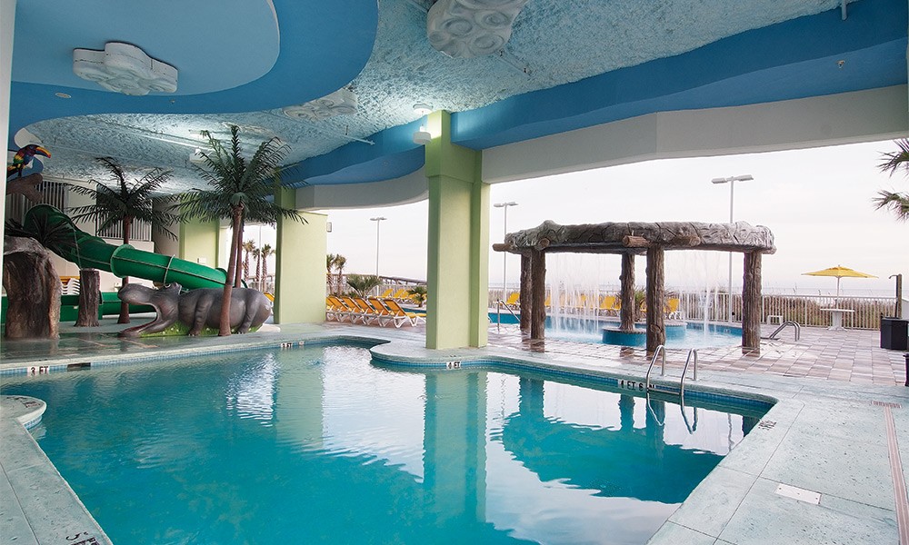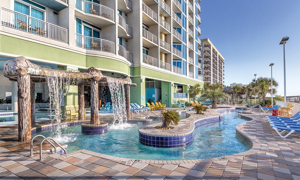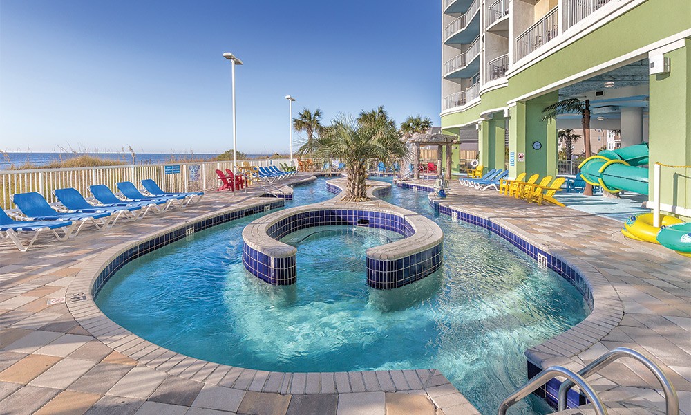 No matter what you're in the mood for, you'll find something to keep everyone busy. The enticing shores of the Cherry Grove area let you play the day away with thrilling beachside activities and water sports like boating, jet skiing, beach volleyball and banana boating. Enjoy a leisurely day of fishing along the Cherry Grove Pier, or set your tee time at the World Tour Golf Links. Shops near this North Myrtle Beach vacation resort are aplenty. Just head to Broadway at the Beach for big shopping, dining and entertainment adventures. An unforgettable vacation getaway on the gorgeous Grand Strand coastline awaits. At Wyndham Towers On The Grove at North Myrtle Beach, you'll find plenty of ways to put your mind at ease at this oceanfront resort. Take a dip in the refreshing covered outdoor pool or float the day away on the lazy river. Wi-Fi is accessible throughout the resort, so you can stay connected and share your adventurous Myrtle Beach travels. Keep up your workout routine at the fitness center. Convenient beach access is just steps away.