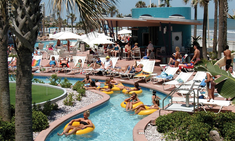 You'll discover it all at Wyndham Ocean Walk. This beachfront vacation resort offers exceptional amenities and leisure comforts that create an unforgettable family vacation or romantic retreat in the heart of Daytona Beach. A dip in one of the two indoor or two outdoor heated pool, a relaxed journey down the lazy river or an exhilarating gush down the water slide is the perfect way to either de-stress or let out a little extra energy. The fitness center features work-out machines, free weights and even a variety of health classes to stay fit. Kids and adults of all ages can challenge their friends to a match in the game room or one of the miniature golf courses, and enjoy fun resort activities programs. A social occasion, wedding or event held in the 250 person Grand Ballroom is sure to be the highlight of the season.