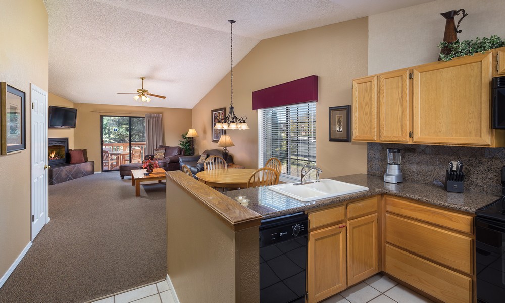 Whether you're traveling with extended family or a smaller party, you will appreciate the privacy of separate bedrooms, the economy of a fully equipped private kitchen, and the convenience of a washer/dryer in each suite. Plus, a whirlpool tub, full dining room, and TVs throughout are comforts you just won't find in an average hotel room. Enjoy a hot cup of cocoa by the fireplace or take in the fresh air and mountainside scenery from the comfort of your own private balcony in this relaxing, vacation destination home.