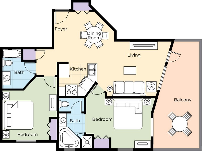 You will appreciate the privacy of separate bedrooms, the economy of a full kitchen and the convenience of a washer/dryer in each suite. Plus, whirlpool tubs, full dining area, private balconies, cable TVs and Wi-Fi throughout are additional comforts to make your stay that much better.