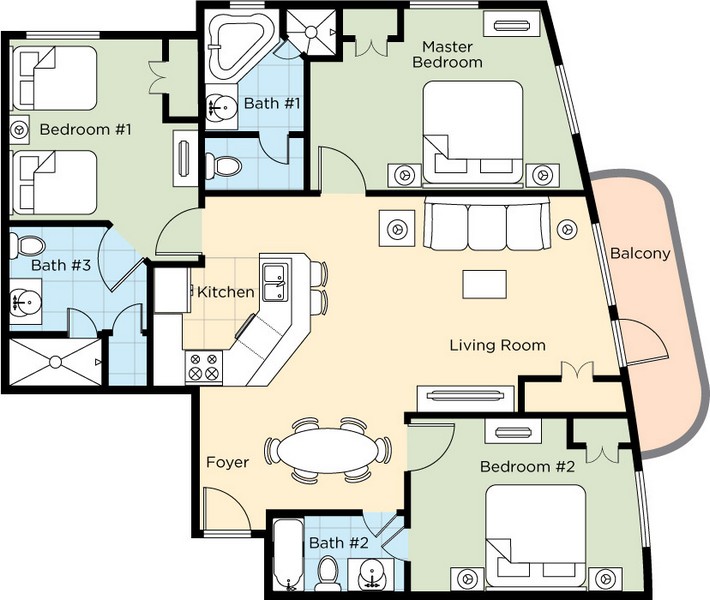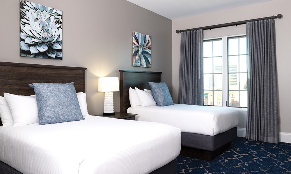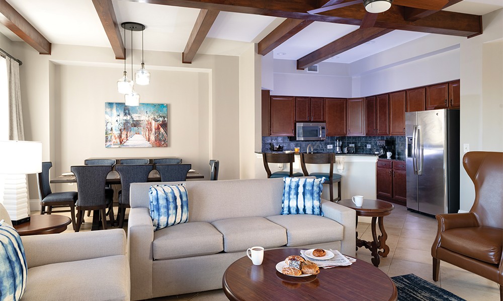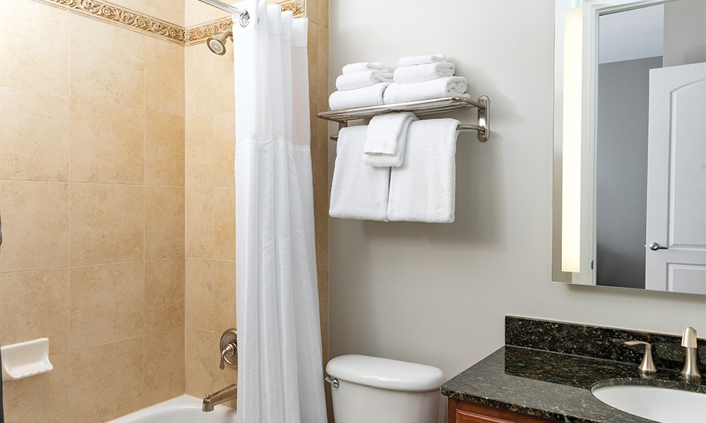 You will appreciate the privacy of separate bedrooms, the economy of a full kitchen and the convenience of a washer/dryer in each suite. Plus, whirlpool tubs, full dining area, private balconies, cable TVs and Wi-Fi throughout are additional comforts to make your stay that much better.