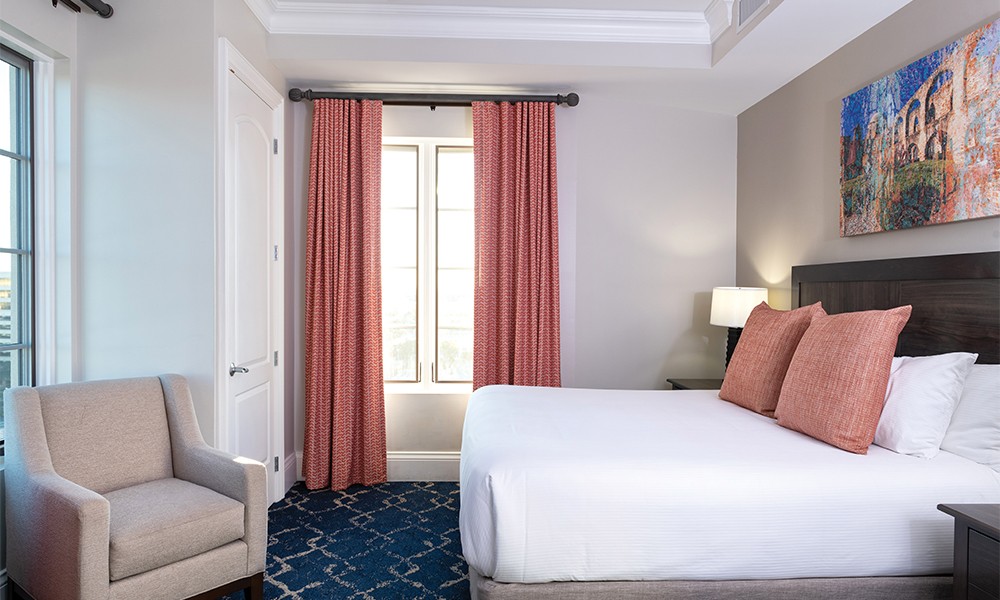 The courteous concierge staff delivers a dose of Southern hospitality with helpful tips at the San Antonio vacation resort. Splish and splash in the shimmering rooftop swimming pool. Stay connected with complimentary Wi-Fi and keep to your workout routine at the on-site fitness center.