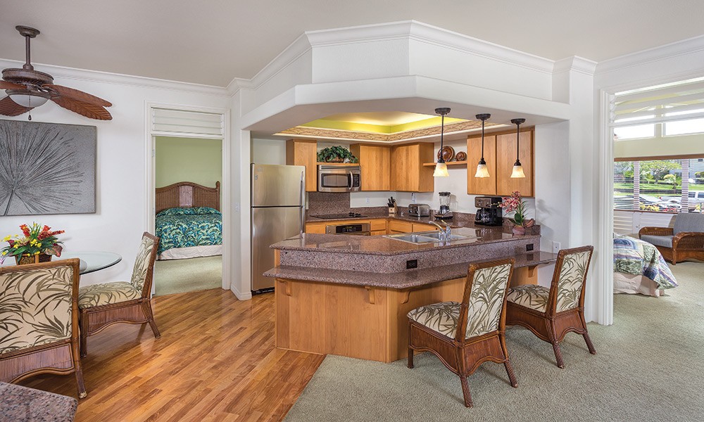 At Club Wyndham Bali Hai Villas, these spacious one-, two-, and three-bedroom resort suites comfortably sleep four to eight guests and range from 871 to 1,668 square feet. Each suite features one or two master bedrooms with one king or one queen bed, guest rooms with one queen or two double beds and a full sofa sleeper in the living area. You will appreciate the privacy of separate bedrooms, a full kitchen, and the convenience of a washer/dryer in each suite. Plus, a separate living/dining area, private lanai, complimentary Wi-Fi, ceiling fans and TVs throughout are comforts that are hard to find in an average hotel.