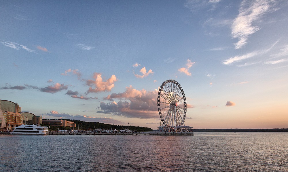 Treasured Past, Trendsetting Present. Just minutes from Washington, D.C., Wyndham National Harbor sits near the banks of the Potomac, in the heart of the pulsating National Harbor waterfront district where happening night spots, retail shops and premier restaurants are aplenty. You can settle in and enjoy the neighborhood, or use this resort as a springboard for experiencing the best of the nation's capital and all other Washington, D.C. area sites and attractions.