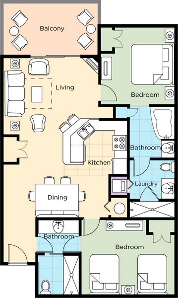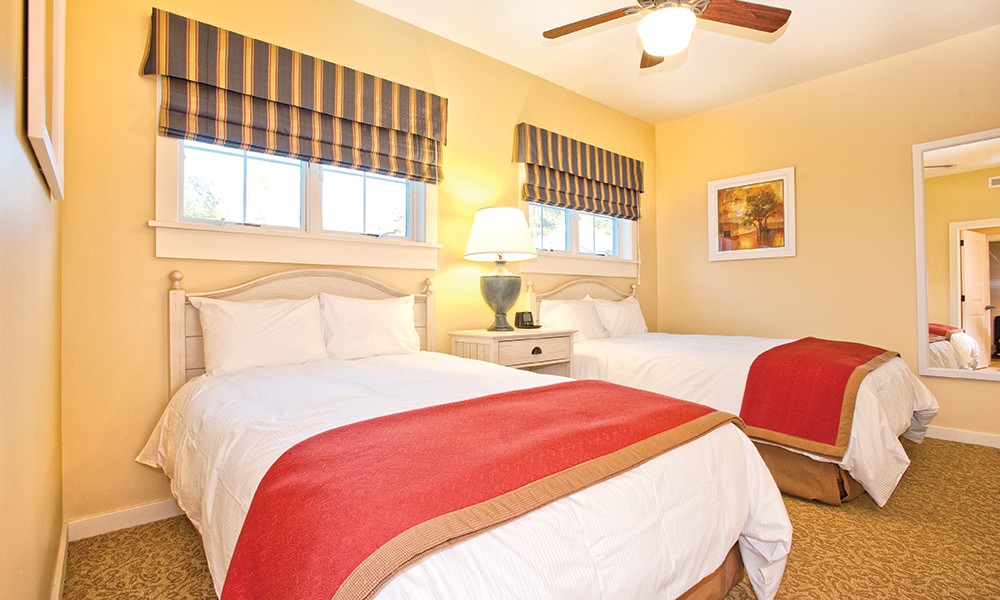 Offering spacious two-bedroom resort villas that comfortably sleep up to eight guests and range from 1,085 to 1,150 square feet. Floorplans vary from one to two stories, so choose the villa that works for you! You will appreciate the privacy of separate bedrooms and the economy of a full kitchen. As a plus, most villas also offer a patio for stargazing and a fireplace for chilly nights.
