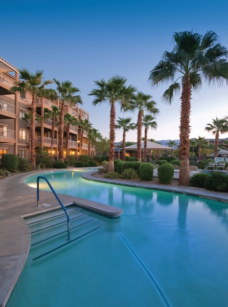 Amenities abound at Wyndham Indio, a Mediterranean family-style desert resort. Take a dip in the outdoor swimming pool and relax as you float down the lazy river or soak in one of the five hot tubs. Keep up your workout routine at the on-site fitness center. Practice your backhand, overhand and serve at the tennis court, and indulge all your senses with a massage, facial or wrap at the Spa at Indio. Other not to be missed amenities include a game room, business center, a barbeque grilling station, two chlidren playgrounds and movie rentals.