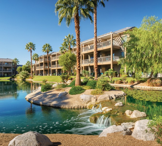 Amenities abound at Wyndham Indio, a Mediterranean family-style desert resort. Take a dip in the outdoor swimming pool and relax as you float down the lazy river or soak in one of the five hot tubs. Keep up your workout routine at the on-site fitness center. Practice your backhand, overhand and serve at the tennis court, and indulge all your senses with a massage, facial or wrap at the Spa at Indio. Other not to be missed amenities include a game room, business center, a barbeque grilling station, two chlidren playgrounds and movie rentals.
