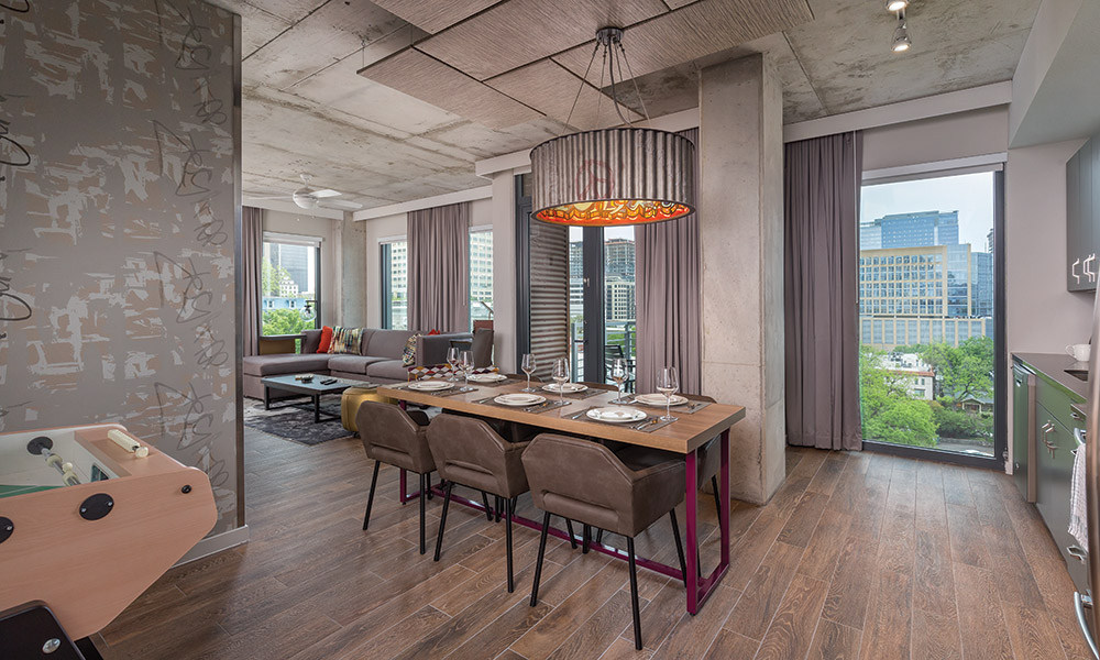 But before you step out to enjoy all that Austin has to offer, take some time to embrace the resort's countless amenities. Relax, cool off and take a dip in the outdoor zero-edge infinity pool and kick back on the rooftop sun deck. Keep up with your workouts at the fitness center, equipped with cardio machines. Guests will enjoy the high-speed Wi-Fi access, a game room and beautiful barbecue areas. Stay in your own personal resort suite right in the heart of Austin.